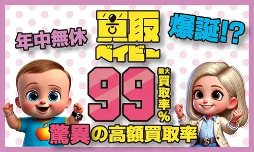 買取ベイビー | 76.0% | 76.0% | 最短30分 | 24時間 年中無休 | 公式サイト |
